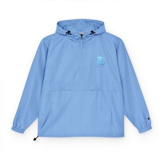 Light Blue Packable Anorak Jacket — Champion Windbreaker with Floral Logo
